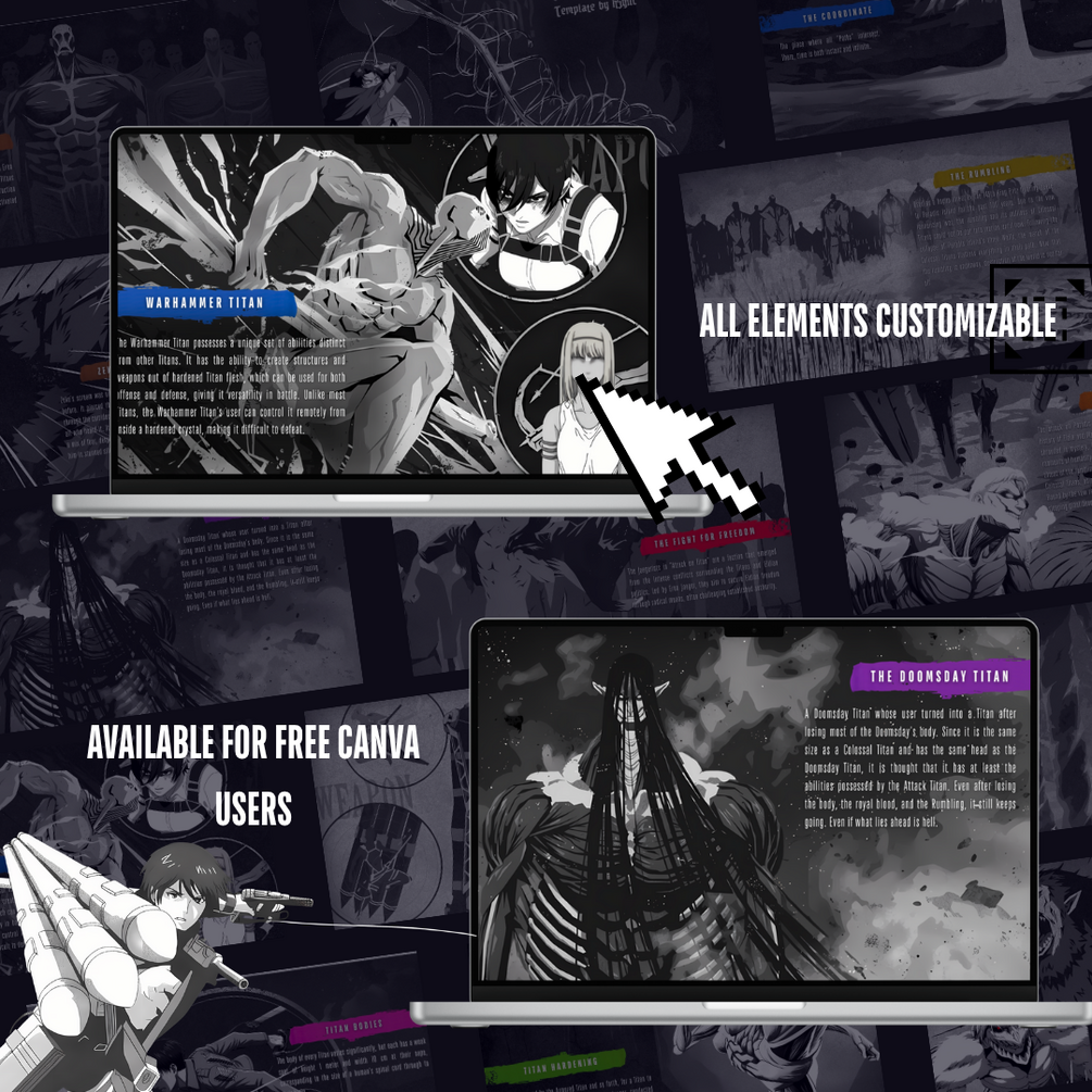 You'll get a fully customizable Attack On Titan themed Canva template!